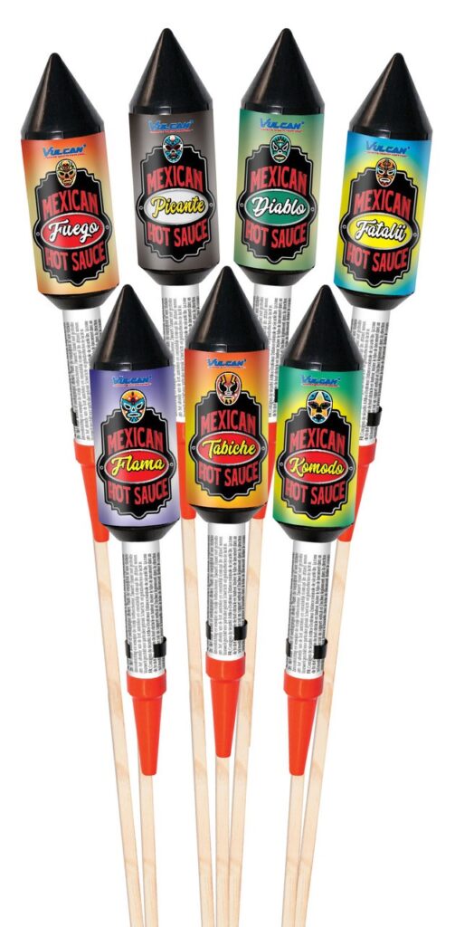 7- delig vuurpijlen assortiment met een bijzonder smaakvol en pittig design.Chili Con Bang Rocket assortment Goedkoop vuurwerk kopen bij Vuurwerkwinkel Doetinchem