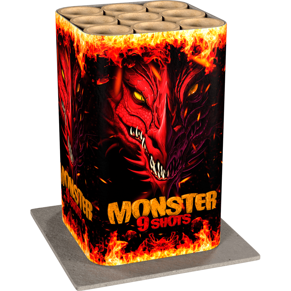 Monster n ncake met 9 shots, afwisselend een brokaatkroon, rode glitters en diepblauwe sterren met gouden crackling. n nKaliber 20 nAantal schoten 9 nBrand duur 15 Seconden Monster Goedkoop vuurwerk kopen bij Vuurwerkwinkel Doetinchem